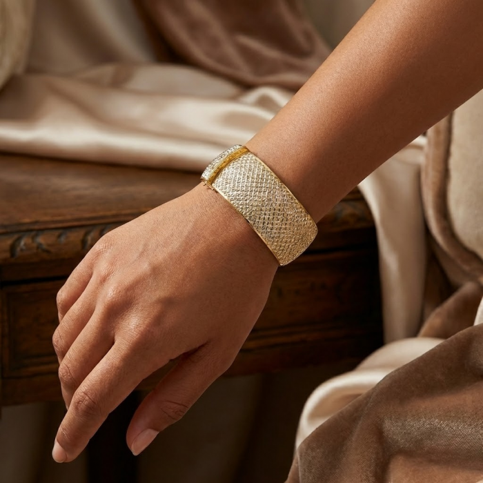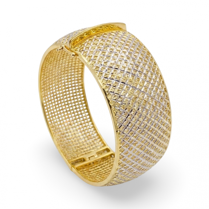 14 Ayar Altın Petek Motifli Çift Renkli Kelepçe Bileklik