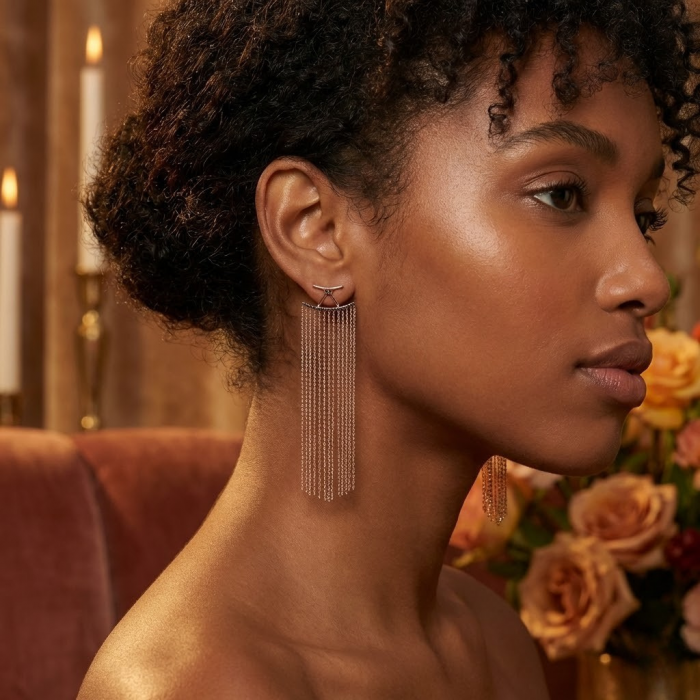 14 Ayar Altın Rose Geometrik Dökümlü Küpe